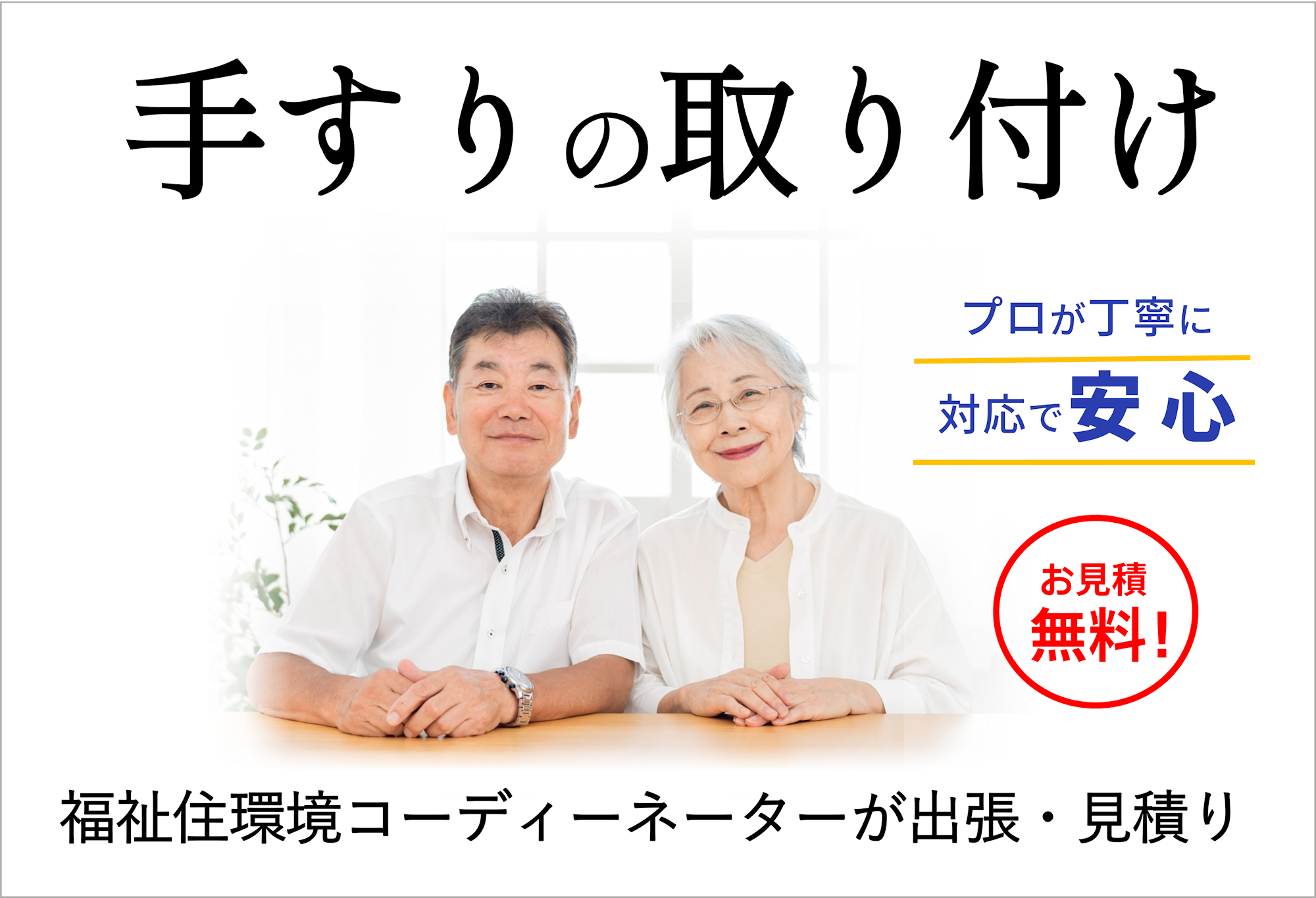はじめまして。福祉住環境コーディネーターの高橋です。手すりの取付は実際に手すりを使う方にとって使いやすい場所に設置しなければ意味がありません。ご高齢の方、障害をお持ちの方が感じる不自由さや不便さは一人一人違います。 ですので私がいつも心がけていることは、手すりを使うご本人様やご家族の方のお話を良く聞きながら、お体の様子や体の動きの流れを考えて丁寧にご提案をすることです。手すりを付けることによって安心して暮らせるお手伝いをさせていただきたいと思います。
